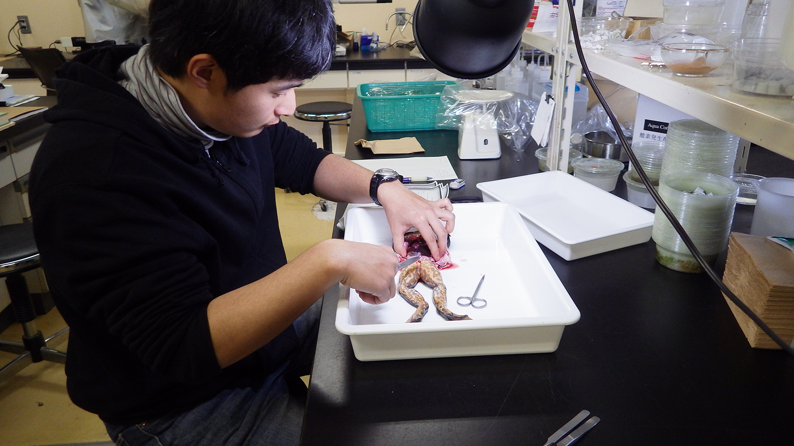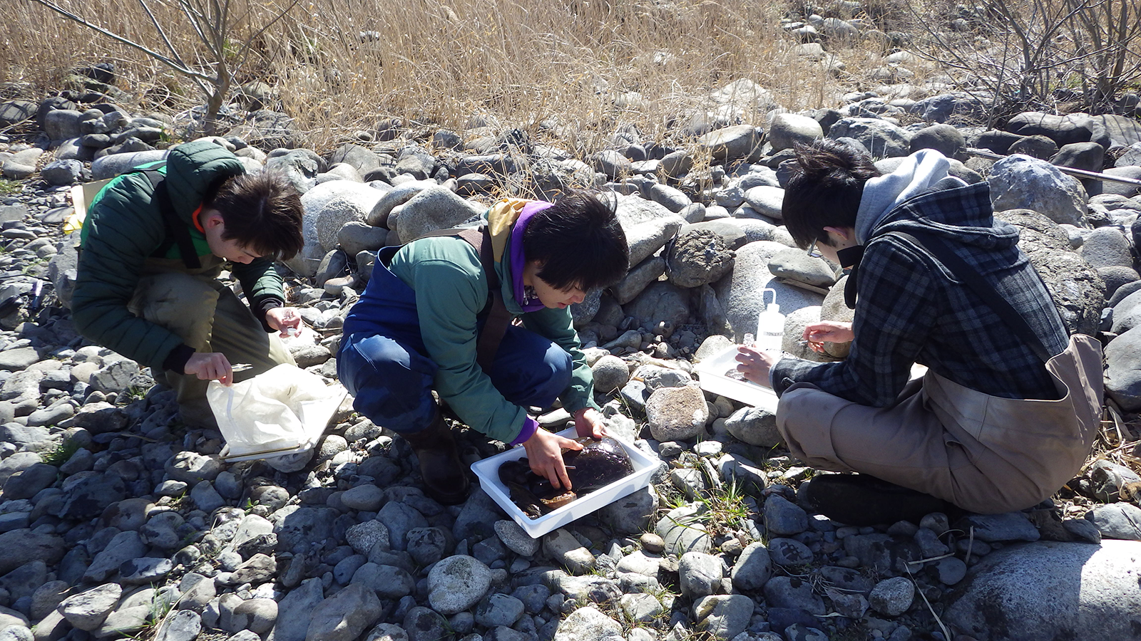 陸水生物学研究室では,川や湖にすむ貝類と寄生虫の生態に関する研究を主に行っています。分類学や貝と寄生虫の関係の進化といった基礎研究に加えて,外来貝類・外来寄生虫の影響調査やそれらのコントロールのような応用研究も行っています。