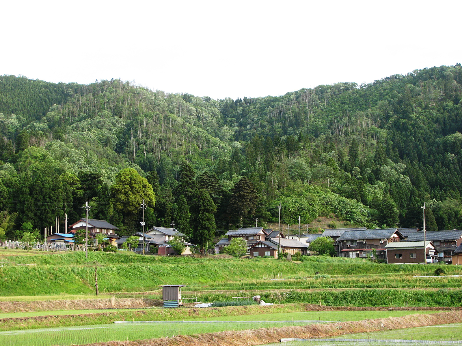 里山の外観です。身近な森林植生が広範囲に分布し,環境にも重要な役割を果たしています。